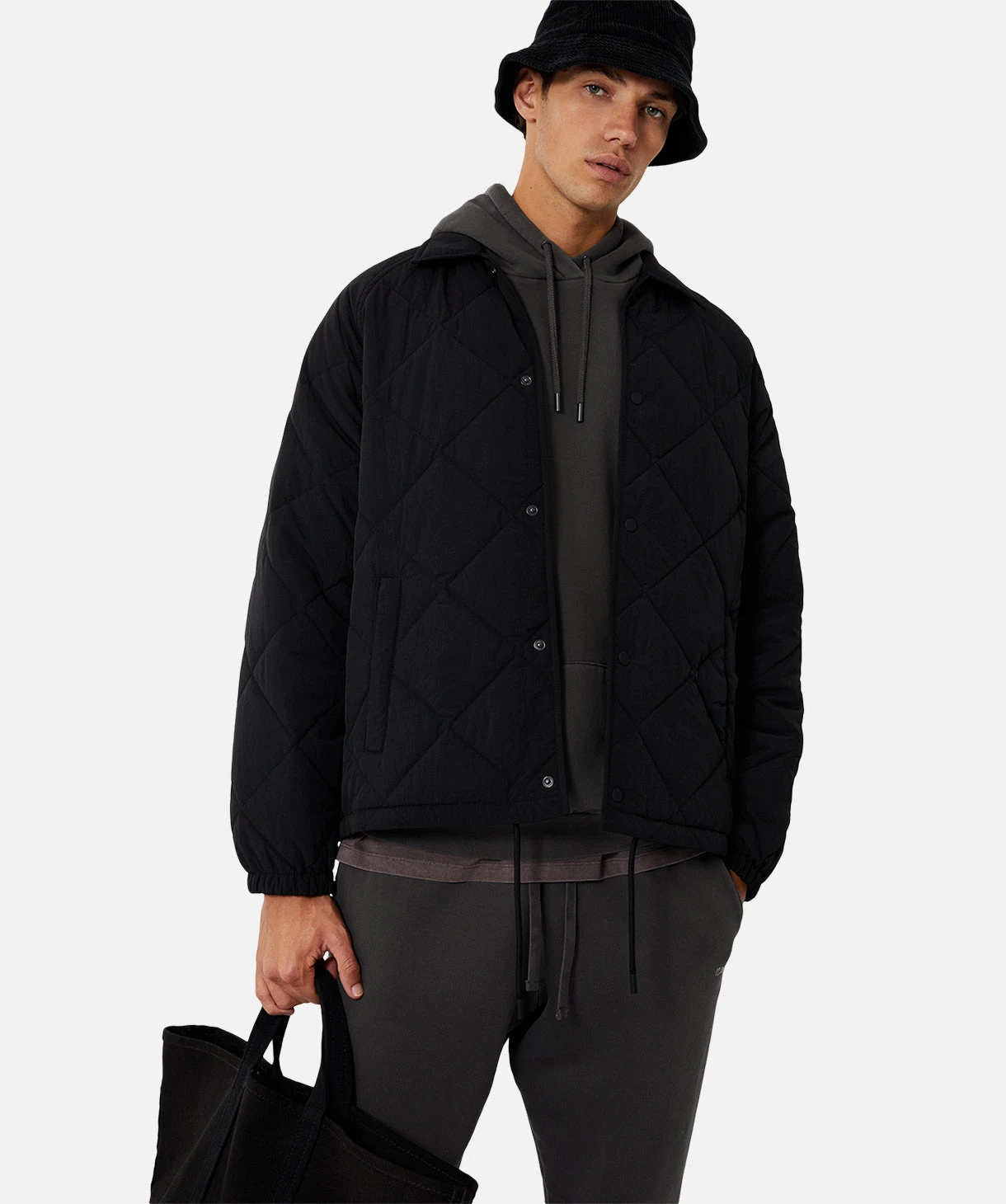The Carter Jacket features snapped buttons and a diamond quilt pattern, giving a unique heritage look and feel. With its 90s sportswear-inspired design, this lightweight jacket is perfect for the fashion-forward man who wants to make a statement. Add this must-have piece to your wardrobe today!